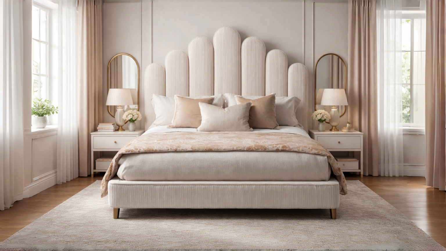 Letto matrimoniale imbottito in tessuto 200x160x120 cm - bianco crema - per camera da letto - testiera decorativa moderna
